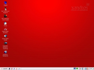 ●概要(2004.11.XX) 「Xeandros」とは、DebianベースのLinuxで、「カナダCorel社」が開発した「Corel LINUX」を、「カナダXandros社」が引継ぎ開発したLinuxデストリビューションです。特徴としてはインストール作業が非常に簡単なことが挙げられます。これからDebianを勉強したい人にとってはBestなデストリビューションです。有償版と無償版がありますが、無償版で十分だと思います。 但し、日本語が組み込まれていないため、別途Dedianのサイトからパッケージを入手する必要がありますので、ご了承ください。 左図のようなデスクトップですが、rootは赤、一般ユーザーは青ですが、Gnomeより見栄えがします。これだけでも筆者は満足してしまいました。 |