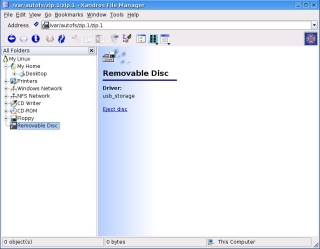今では常識なのかもしれませんが、USBも自動認識できました。Xandrosには「File Manager」があり、そこからUSB接続の「Removable Disc」を確認できました。「/var/autofs/zip.1/zip.1」に領域ができるようです。もちろんGUIでの操作もできますので、関係ないかもしれません。 |